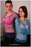 Tall Emma has her smaller victim Sue locked tight in a waist scissors and she's cranking on the pressure, trying to make her victim submit. Hair pulls, breast and nipple mauls, back and forth these two fighting felines attack each, all the while with Sue caught between Emma's powerful thighs until finally, Sue collapses from the intense pressure.